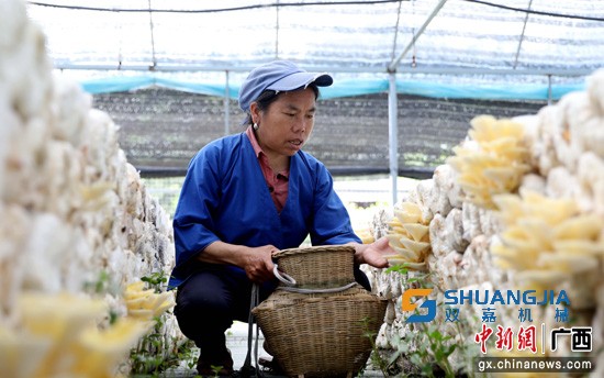 4月26日,在广西三江侗族自治县八江镇汾水村食用菌产业基地,农户正在管护菌棒、采收黑木耳和黄金菇,大棚里一派繁忙景象。近年来,该村以“党支部+合作社+农户”模式,大力发展食用菌种植产业,全力打通生产销售全产业链,有力促进农业增效和农民增收。下半年该村计划种植黑木耳4万棒,同时增加菌菇品种,有力推动村集体经济增值,助推乡村振兴。